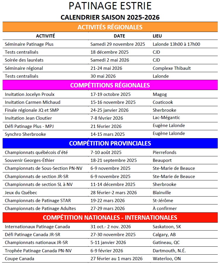 Calendrier Patinage Plus