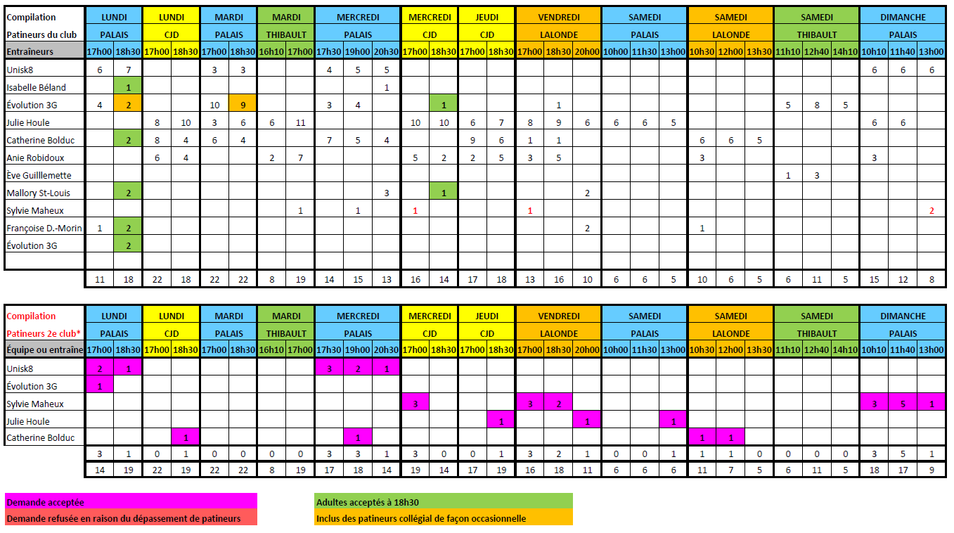 Veuillez consulter régulièrement le mémo de la semaine pour connaitre tous les changements d’horaire.