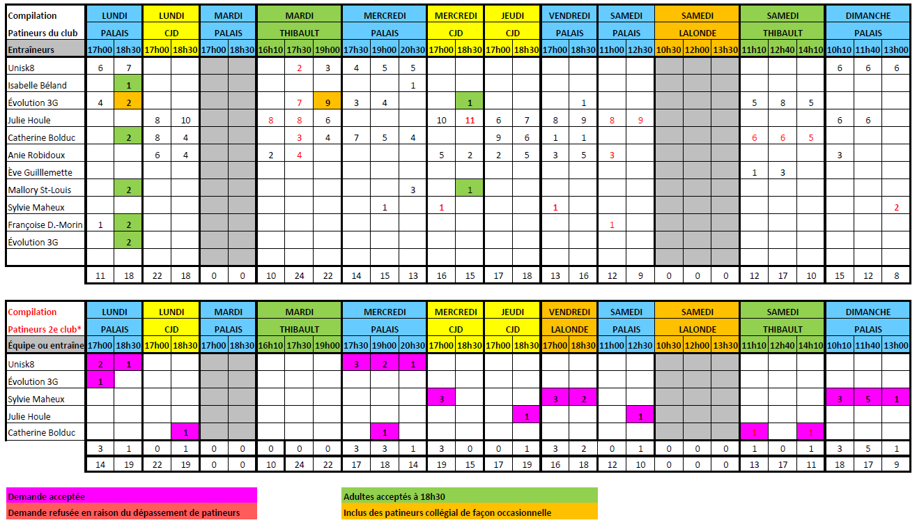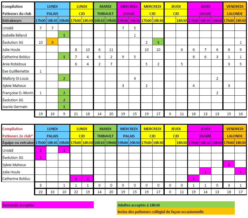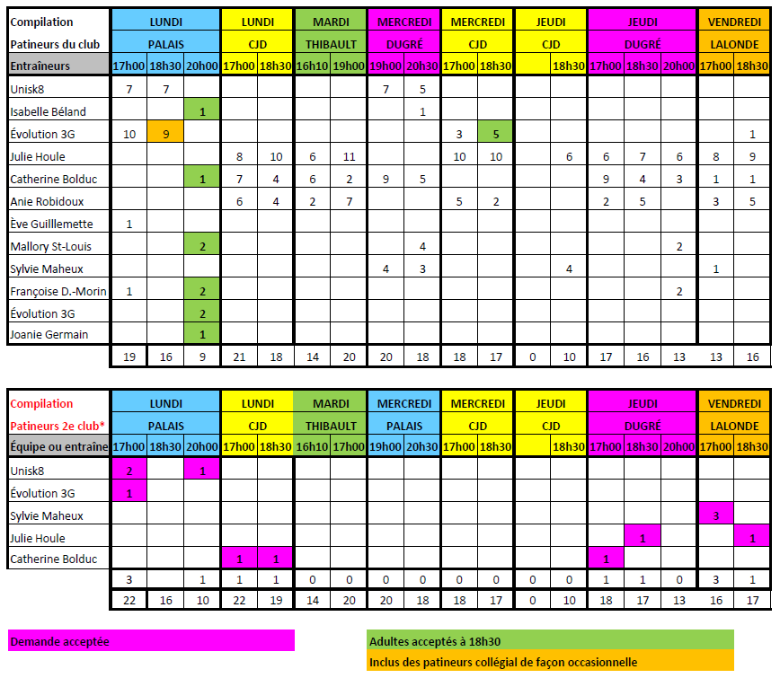 LALONDE: Horaire régulier, Équipe de Julie Houle, UNISK8 et autres entraîneurs