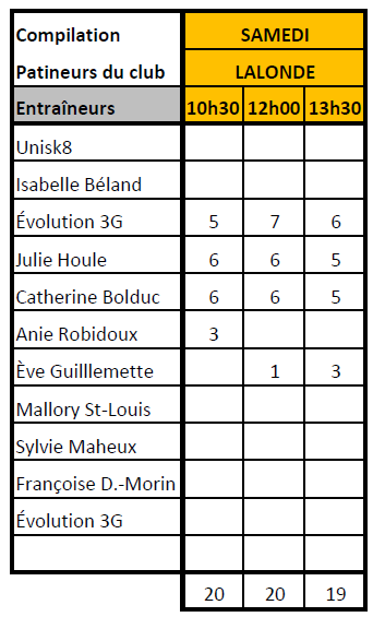 Message aux entraîneurs: Vous avez l’obligation de vérifier si vos patineurs sont bien inscrits avant de les autoriser à embarquer sur la glace. Vous devez aussi vous assurez être sur la liste des entraîneurs en règle
